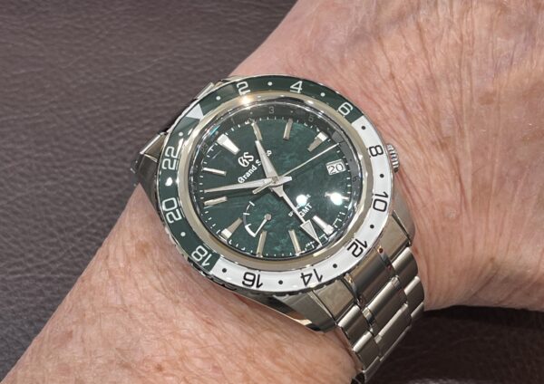 鮮やかなグリーン文字盤と、ツートーンのベゼルが美しい1本です。