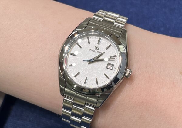 こちらの文字盤は「雪白」と名付けられた繊細な風雪紋を宿す径小クオーツモデルです。