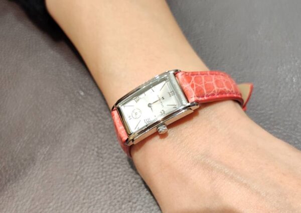 ストラップを今回、ワクイズのピンク色のクロコダイルレザーに変更したことで、